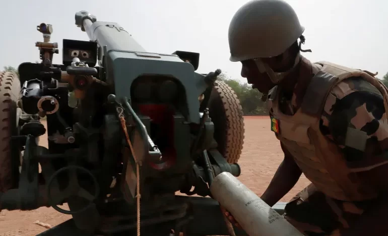 A Malian soldier stands in position with his weapon during an attack on Mali's main military base Kati outside the capital Bamako, Mali April 25, 2026. REUTERS/Stringer TPX IMAGES OF THE DAY