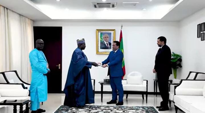 تسلم الوزير الأول، المختار ولد اجاي، اليوم الثلاثاء في نواكشوط، رسالة خطية موجهة من رئيس جمهورية الغابون، بريس أكلوتير أوليكي أنغويما، إلى رئيس الجمهورية محمد ولد الشيخ الغزواني.