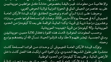 الجيش الموريتاني يوضح ملابسات مقتل منمين داخل الأراضي المالية ويؤكد جاهزيته لحماية الحدود
